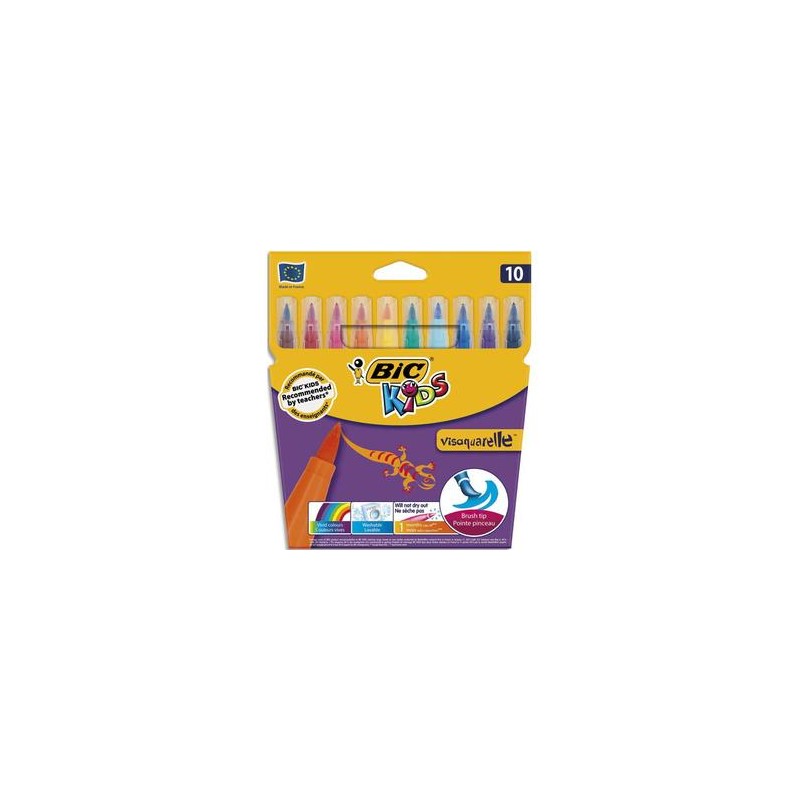 BIC Pochette 10 feutres à dessin pointe pinceau encre lavable CONTE VISAQUARELLE