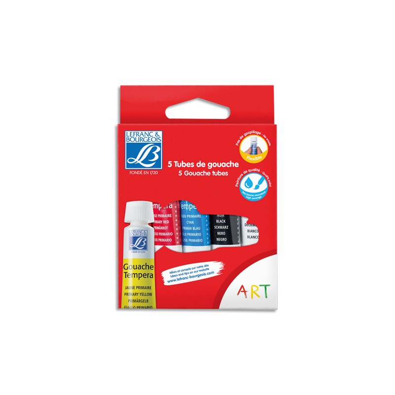 LEFRANC & BOURGEOIS Boîte brochable en carton de 5 tubes de gouache 10ml. Coloris assortis