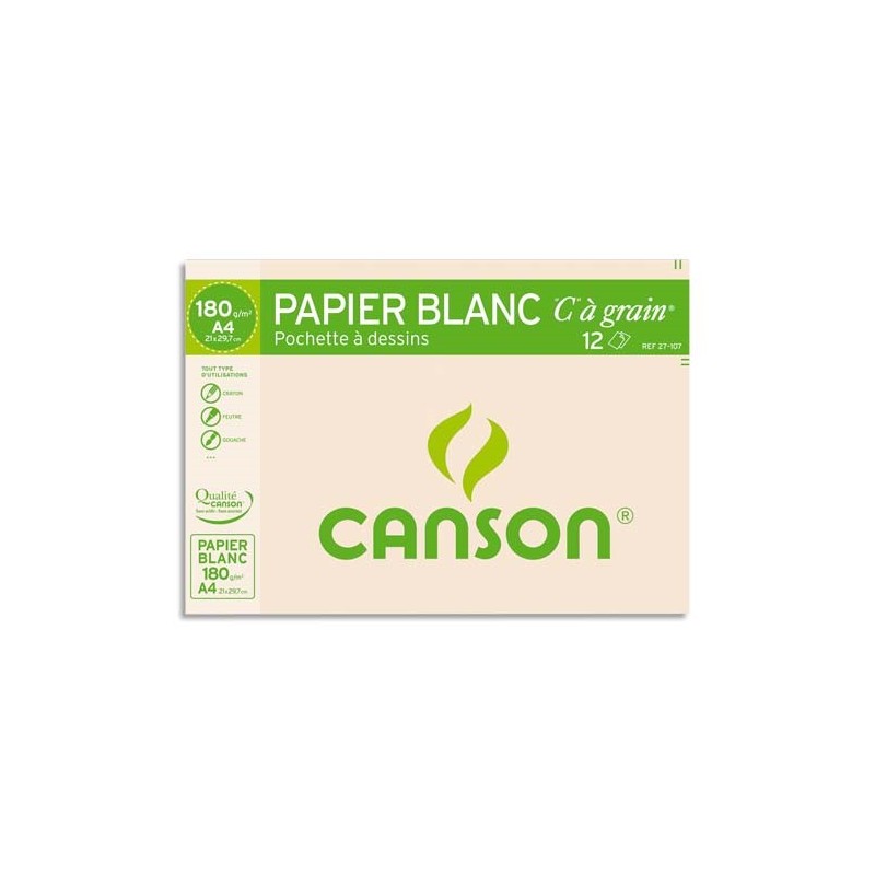 CANSON Pochette de 12 feuilles de papier dessin C A GRAIN 180g A4 Ref-27107