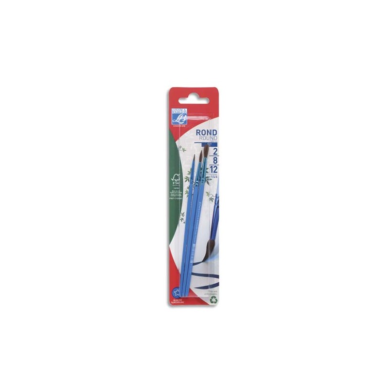 Set de 3 pinceaux ronds n°4, 8 et 12 -Poils synthétiques ocre jaune