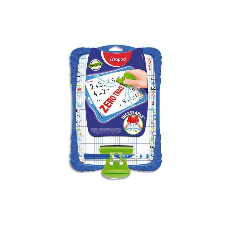 MAPED Ardoise (incassable) effaçable à sec 21x29,7cm double face (unie/Séyès). Avec feutre, effaçette