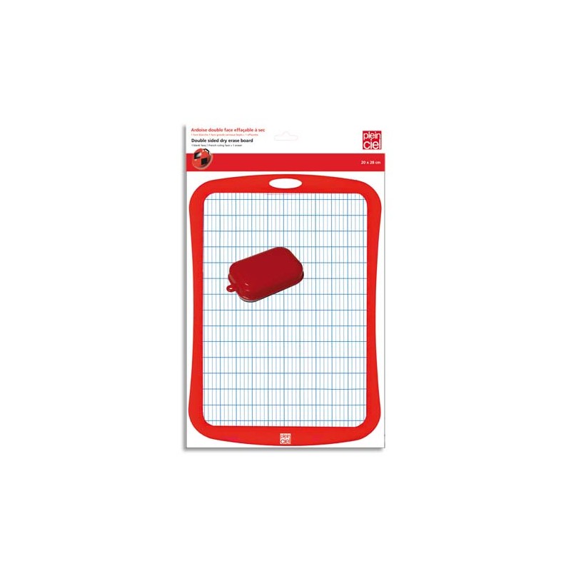 Ardoise effaçable à sec A4 sous blister brochable. Cadre plastique de couleur rouge