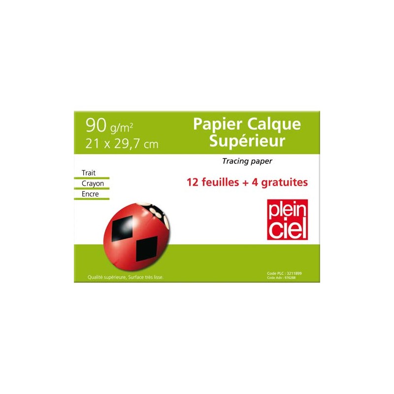 PLEIN CIEL Pochette de 12 feuilles+4 gratuites papier calque 90g format A4